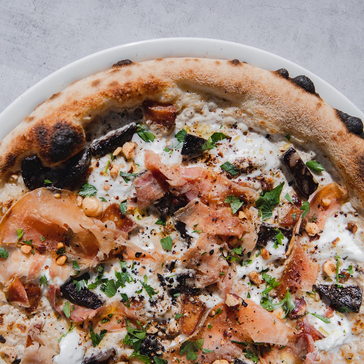 Jambon de Parme, noisettes torréfiées et persil frais